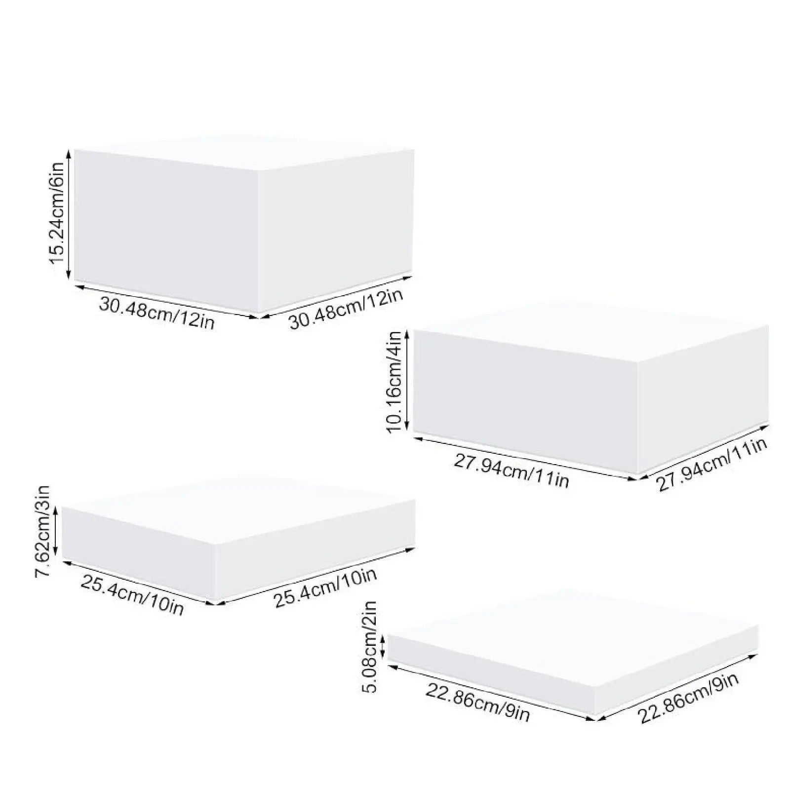 【Package】you will receive a total of 4 pieces acrylic cube display box riser for display. 【Make The Table Setting 】Acrylic cube display nesting riser will easily make up for table space, made great storage when turned upside down for a different display. 【Material】Our display riser is made of acrylic, which is sturdy for long term use. 【Design】Acrylic display riser shelf for dessert jewelry show with hollow bottoms,which is stackable. 【Wide application】Food buffet riser for table, retail showcase, catering, cakes, collectibles, toys, jewelry, cosmetics,etc.